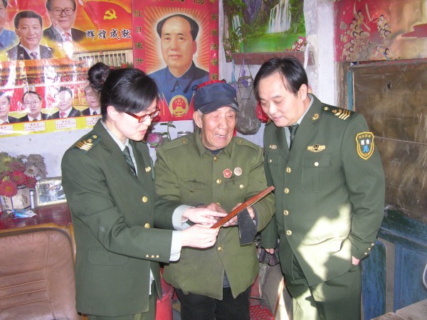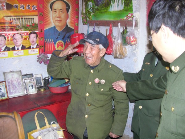 在老人田緒家,黨員代表們仔細(xì)詢問(wèn)了老人的身體、家庭和生活情況,并懷著對(duì)革命老前輩的敬佩,認(rèn)真聆聽(tīng)了老人的革命事跡,老人現(xiàn)年87歲,于1948年參軍后,曾先后參加過(guò)新保安戰(zhàn)役、渡江戰(zhàn)役、平津戰(zhàn)役、抗美援朝戰(zhàn)役,在戰(zhàn)役中多次受傷,并多次受到嘉獎(jiǎng),老人的這些經(jīng)歷使大家的敬佩之情油然而生。老人家中的土墻上貼滿了國(guó)家領(lǐng)導(dǎo)人的畫(huà)像,他的一句話深深打動(dòng)了在場(chǎng)所有的人,他說(shuō):“感謝政府,給了我現(xiàn)在的好生活,感謝你們來(lái)看我,比起戰(zhàn)場(chǎng)上犧牲的戰(zhàn)友們,我真的很幸福!”書(shū)記張海鵬握住老人的手深情地說(shuō):“沒(méi)有你們這些老同志們?yōu)楦锩龀龅呢暙I(xiàn),也沒(méi)有我們現(xiàn)在的好生活,祝您新春快樂(lè)、健康長(zhǎng)壽。”在聽(tīng)到祝福后,老人激動(dòng)地敬了一個(gè)標(biāo)準(zhǔn)的軍禮,流下了激動(dòng)的淚水。